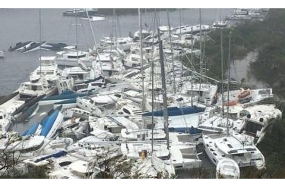 Những chiếc thuyền bị sóng và gió đánh túm tụm lại trên đảo Tortola hôm 6/9. Ảnh: Reuters. |