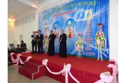 Lúc này, tại Nhà Thờ Chánh Tòa Phủ Cam - Huế đã tấp nập người từ các nơi đổ về tham dự thánh lễ Tạ ơn mừng Đức Tân TGM Phanxicô Xaviê và tri ân Đức Tổng Giám Mục Têphanô.
