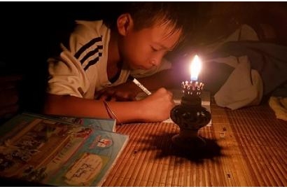 Ăn tối xong, em Nguyễn Văn Khánh, học sinh lớp 5 của Trường tiểu học Cẩm Nhượng xin phép bố mẹ mang chiếc đèn dầu của cả gia đình vào giường để học bài.