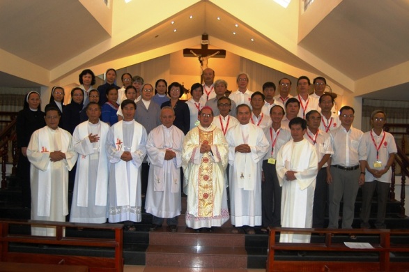 Sáng ngày 05 tháng 06 năm 2013, Đức Cha Giuse Võ Đức Minh chủ tế thánh lễ cho các TDV tham dự khóa tập huấn Giám sát - Lượng giá - Báo cáo Dự án tại Tòa Giám mục Nha Trang.