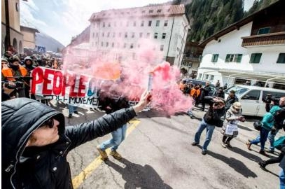 Người dân biểu tình chống lại kế hoạch của chính phủ Áo xây dựng hàng rào biên giới kiểm soát tại Brenner Pass hôm 24 tháng 4. Đức Giám mục Agidius Zsfikovics, giáo phận Eisenstadt đã từ chối không cho phép một hàng rào ngăn người tị nạn chạy ngang khu đất thuộc sở hữu của địa phận của ngài, ngài nói rang hành động ngăn cản của chính phủ vi phạm những giá trị Ki-tô giáo. CNS photo/Courtesy of Jan Hetfleisch, EPA