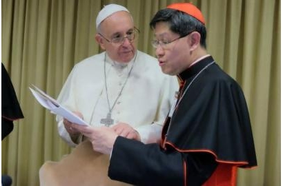 Pope Francis with Caritas Internationalis President Cardinal Tagle. Paul Haring/CNS