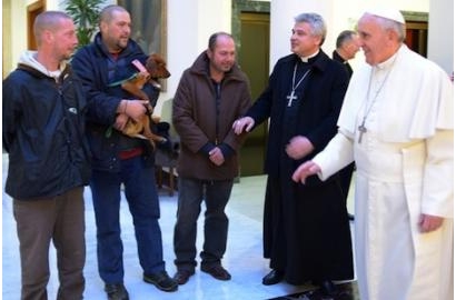 One of the men told the pope, "It's worthwhile being a vagrant because you get to meet the pope," the paper said.