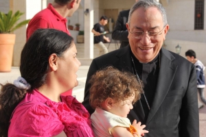 | Cardinal Rodriguez meeting Syrian and Iraqi refugees in Jordan in May. Credit: Dana Shahin/Caritas Jordan |