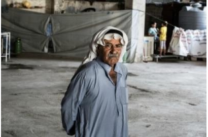 | An internally displaced Christian man in the construction site in Erbil, Iraq where he has found shelter. Caritas has been supporting Christian and Yazidi families forced to flee. Photo by Daniel Etter for Catholic Relief Services |