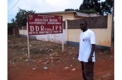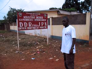 | Fr Elysée Guedjande in front of Caritas officeCredits: Caritas |