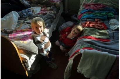 | Families who had homes and jobs find themselves crammed into a small room or two and are largely dependent on charity. Credit: Caritas Ukraine |