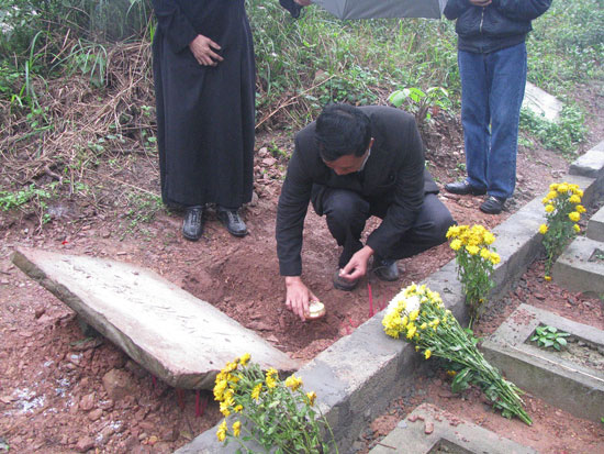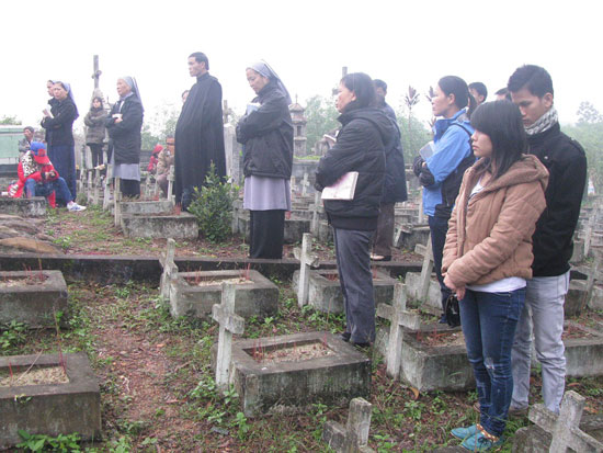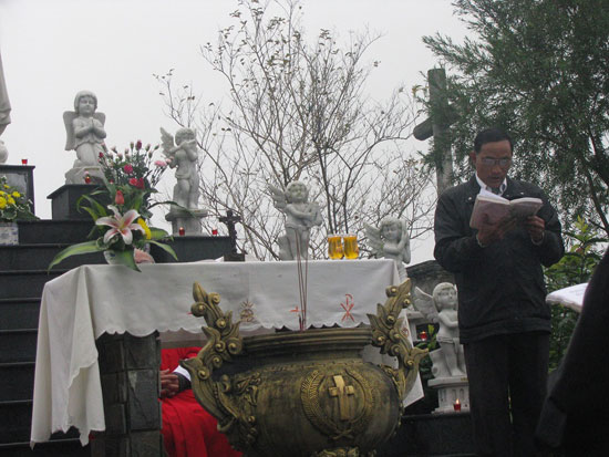 Sau Thánh Lễ, Cha chủ tế cùng cộng đoàn cử hành nghi thức an táng cho Thai Nhi vừa được đưa đến và thắp hương trên mộ của cháu.