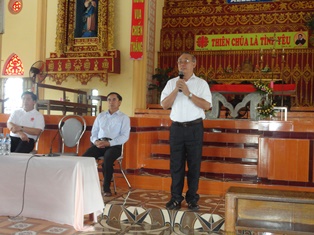 Cha Giuse Trần Hưng Đạo – Giám đốc Caritas Bùi Chu đã trình bày và giới thiệu cho cộng đoàn tham dự hiểu về lịch sử, sự hình thành, Điều lệ, cách thức hoạt động cũng như quyền lợi nghĩa vụ của các thành viên Caritas. Ngài cũng cho cộng đoàn thấy được các hoạt động mà Caritas Bùi Chu đã làm trên toàn Giáo Phận trong những năm gần đây và động viên, khuyến khích mọi người hãy tích cực làm việc bác ái vì đó là căn tính của người Kitô hữu.