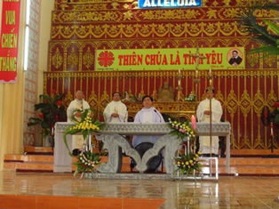 Ngay sau bài thuyết trình, Thánh lễ được cử hành do cha Giuse Trần Hưng Đạo chủ tế cùng với 3 Linh mục đồng tế và hơn 1000 tín hữu tham dự.