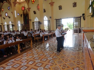 Trong bài giảng lễ, cha Gioan Baotixita Mai Quang Tuyến đã cho cộng đoàn thấy tấm gương làm việc bác ái của Mẹ Terexa, khen ngợi những người yêu thích, hăng say làm việc bác ái và khích lệ những người đang tham gia công việc bác ái tại Giáo xứ Vinh Phú.