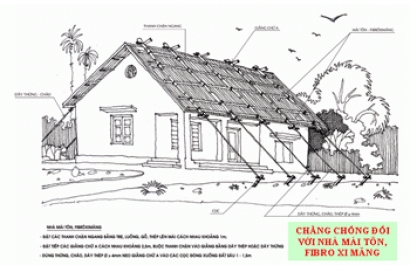 · Đối với nhà mái lá: dùng giằng chữ A và dây neo để chống tốc mái, đổ nhà.