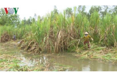 | Mía ở huyện Phụng Hiệp, tỉnh Hậu Giang bị ngập. |