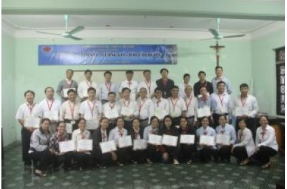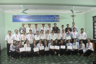 Cuối cùng chính Thầy Trần Triêu Ngõa Huyến - Giảng viên chính của khóa học và anh Bùi NGọc Hiệp – Nhóm Liên Kết trao bằng cho các tham dự viên. Đúng 11g30, mọi người hiệp thông trong kinh nguyện tạ ơn để kết thúc khóa học.