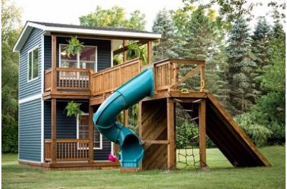 Ngôi nhà cao 7,3m có khu bếp, nhiều phòng cho gia đình và bạn bè, cầu trượt, xích đu...