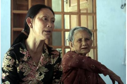 Chị Bậu bên cạnh mẹ già đã 86 tuổi. Ảnh: Tiến Hùng. |