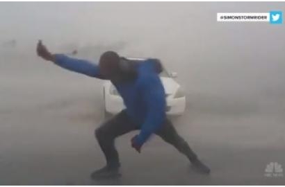 Có thời điểm Drake bị gió đẩy lùi vài mét, song anh vẫn gồng mình bám trụ, cố đứng thẳng. Drake cho biết anh làm công việc săn bão đã nhiều năm nhưng chưa bao giờ gặp một cơn bão nào như Irma.