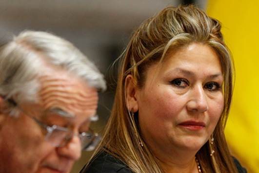 ATICAN CITY (RNS) Floribeth Mora Diaz fought back tears on Thursday (April 24) as she claimed that the late Pope John Paul II had saved her from an inoperable brain aneurysm three years ago. Floribeth Mora Diaz, who says she survived a brain aneurism due to Pope John Paul II’s intervention, speaks at a press conference on Thursday, April 24. RNS photo by Josephine McKennaMora will be on hand at Sunday’s historic ceremony in St. Peter’s Square as Pope Francis canonizes both John Paul and Pope John XXIII, the Italian pontiff known as “Good Pope John.”