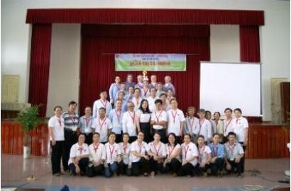7g30: tất cả TDV và dự thính viên trong đồng phục Caritas cùng chụp hình chung dưới tượng Đức Mẹ Lavang trong hội trường với tâm tình con thảo và sự hiệp nhất của mọi thành viên Caritas.