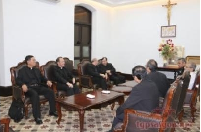 WGPSG -- Cách đây 2 năm, chỉ sau khi kết thúc Cuộc họp vòng III của nhóm Công tác Hỗn hợp Việt Nam-Vatican (diễn ra tại Hà Nội trong hai ngày 27 và 28-2-2012), phái đoàn ngoại giao Tòa Thánh mới đến thăm Sài Gòn và Xuân Lộc trong hai ngày 29-2 và 1-3-2012 (Phái đoàn Tòa Thánh đến Sài Gòn và Xuân Lộc).Lần này, ngay trước khi bắt đầu Cuộc họp vòng V của nhóm Công tác Hỗn hợp Việt Nam-Vatican (diễn ra tại Hà Nội trong hai ngày 10 và 11-9-2014), phái đoàn Tòa Thánh đã có mặt ở Sài Gòn để chào thăm vị Chủ tịch Hội đồng Giám mục Việt Nam - Đức Tổng Giám mục Phaolô Bùi Văn Đọc (ĐTGM), và sau đó được ĐTGM hướng dẫn đi thăm một số cộng đoàn của Tổng giáo phận trong ngày thứ Hai 8-9-2014.Chuyến bay chở phái đoàn Tòa Thánh đã đã đáp xuống phi trường Tân Sơn Nhất vào lúc 19g45 Chúa nhật 7-9-2014. Phái đoàn ngoại giao Tòa Thánh lần này gồm Thứ trưởng Ngoại giao Antoine Camilleri, Đức ông Phanxicô Cao Minh Dung và linh mục Phaolô Nguyễn Quốc Hưng. Ra sân bay đón phái đoàn Tòa Thánh có vị đại diện Tòa Thánh tại Việt Nam Leopoldo Girelli, linh mục Tổng đại diện Ignatio Hồ Văn Xuân và linh mục Chưởng ấn Giuse Đỗ Mạnh Hùng. Khi về tới Tòa Giám mục Sài Gòn, phái đoàn đã được Đức Tổng Giám mục Phaolô Bùi Văn Đọc (ĐTGM) và các linh mục làm việc tại Tòa Giám mục niềm nở đón tiếp. Phái đoàn đã nghỉ đêm tại đây.Chương trình thăm viếngTheo chương trình, sau khi chào thăm ĐTGM Phaolô, vào sáng thứ Hai 8-9-2014, phái đoàn được ĐTGM hướng dẫn đến thăm các chủng sinh tại Đại chủng viện Thánh Giuse, gặp Đức Hồng y Gioan Baotixita Phạm Minh Mẫn (ĐHY) và các linh mục đang làm việc tại Trung tâm Mục vụ Giáo phận (TTMV), thăm các nữ tu đang học tại Học viện Mục vụ Giáo phận và các nữ tu Dòng Kín tại Đan viện Cát Minh, gặp các Giám mục Giáo tỉnh Sài Gòn ở Tòa Giám mục TP.HCM. Vào buổi chiều, phái đoàn đến tham quan trụ sở Văn phòng Hội đồng Giám mục Việt Nam ở Quận Ba và gặp các giáo dân Sài Gòn khi dâng Thánh lễ tại Giáo xứ Tân Phước.Buổi sáng ngày Lễ Sinh nhật Đức MẹLúc 8g sáng, phái đoàn Tòa Thánh cùng ĐTGM Phaolô Bùi Văn Đọc đã được quí linh mục và chủng sinh tiếp đón trọng thể tại Đại chủng viện Thánh Giuse. Linh mục Gíam đốc Gioakim Trần Văn Hương đọc diễn từ chào mừng và trình bày về chủng viện. Đại chủng viện Sài Gòn hiện có 255 chủng sinh thuộc 4 giáo phận của Sài Gòn, Phú Cường, Mỹ Tho và Phan Thiết. Nói về đường hướng đào tạo, Cha giám đốc nhấn mạnh mối quan hệ mật thiết giữa chủng sinh với Chúa Giêsu. Trong bài huấn từ, khởi đi từ lễ Sinh nhật Đức Maria, Đức Ông thứ trưởng Antoine Camilleri nhắc nhở các chủng sinh hãy luôn noi gương Đức Maria để nỗ lực tìm kiếm ý Chúa, trung thực với Chúa và với chính bản thân mình. Ngài nói: “Thách đố lớn của chúng ta là khám phá ra ý định của Thiên Chúa qua những dấu chỉ trong cuộc sống, và chân thành với chính mình”. Về vai trò và sự hiện diện của Tòa Thánh trong xã hội ngày nay, vị Thứ trưởng Tòa Thánh phát biểu rằng: Đức Giáo Hoàng đưa ra được tiêu chuẩn đích thực về luân lý và đạo đức, đồng thời cũng nói lên được tiếng nói của mọi người, đặc biệt là của những người bất hạnh, vì ngài thấy Chúa hiện diện nơi mọi người, nên tiếng nói của ngài được thế giới lắng nghe. Đức Thánh Cha Phanxicô kêu gọi các linh mục hiệp nhất với ngài trong việc quan tâm đến mọi người, nhất là người nghèo, và giúp họ nhận ra sự hiện diện của Chúa trong cuộc sống. Đức Ông Antoine cho biết Đức Hồng Y Pietro Parolin, Quốc vụ khanh Tòa Thánh, luôn dành sự quan tâm đối với Giáo hội Công giáo Việt Nam và mong sẽ đến thăm Việt Nam một ngày gần đây.Rời Đại chủng viện Thánh Giuse, phái đoàn đến thăm ĐHY Gioan Baotixita Phạm Minh Mẫn, lắng nghe ĐHY chia sẻ về sinh hoạt mục vụ và chúc ĐHY luôn được tràn đầy hồng ân Thiên Chúa. Tiếp theo, phái đoàn đến TTMV và được linh mục giám đốc TTMV Phêrô Nguyễn Văn Hiền cùng các linh mục của TTMV hướng dẫn đến thăm một lớp thần học của các nữ tu đang học tại đây. Vị Thứ trưởng Antoine khen ngợi và động viên các nữ tu tiếp tục siêng năng học hỏi Kinh Thánh. Sau đó, phái đoàn đi bộ đến thăm Đan viện Cát Minh ở phía bên kia đường, ngỏ ý mong các nữ tu Dòng Kín cầu nguyện cho cuộc họp vòng V của nhóm Công tác Hỗn hợp Việt Nam-Vatican.Trở về Tòa Tổng Giám mục TP.HCM, phái đoàn đã gặp gỡ các giám mục của Giáo tỉnh Sài Gòn vào lúc 11g00 và dùng cơm trưa với các vị vào lúc 12g00.