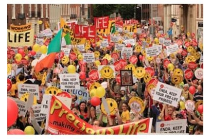 Hàng chục ngàn người đã xuống đường ở Paris để phản đối chống lại luật này. Các người biểu tình mang theo biểu ngữ viết: “Bảo vệ người yếu đuối thì thật sự mạnh mẽ.” (Catholic Herald 17/02/2017)