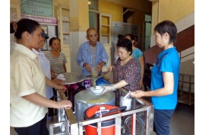 “... Chúng tôi ở gần đây, thuộc giáo xứ An Tân. Chúng tôi là những người trong nhóm “Nồi cháo bác ái” của Caritas giáo phận Hải Phòng. Mấy chị em tham gia vào công việc này được hơn hai năm rồi. Tuần 3 buổi vào chiều thứ Hai, Tư, Sáu hàng tuần. Tại bệnh viện Việt Tiệp này, hiện chúng tôi mới chỉ phục vụ được bệnh nhân ở khoa Ung bướu và khoa Truyền nhiễm...” - Chị Hải, một người trong nhóm đã nói với tôi như vậy trong một lần gặp nhóm các chị vừa làm xong công việc.