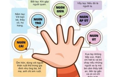 Ngón giữa: người quen như hàng xóm, bạn bè của cha mẹ - bé có thể bắt tay chào hỏi họ.