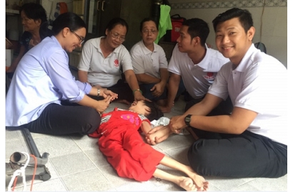 Quý Thầy ĐCV Thánh Giuse Sài Gòn: đến thăm các gia đình có con em bị bại não nằm rải rác ở nhiều giáo hạt
