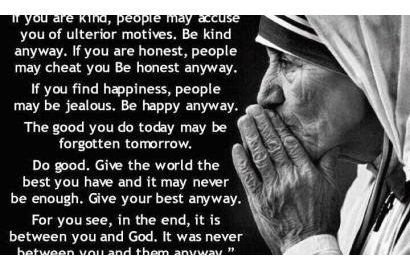 Một phụ nữ giúp sơ Elsie nấu thức ăn tại tu viện, trừ ngày Chúa nhật. Người tài xế giúp sơ Elsie chuyên chở thức ăn là một tín đồ Ấn giáo từng nghiện rượu. Từ khi từ bỏ được tật xấu, ông theo giúp sơ Elsie và không nghỉ ngày nào, vì ông biết nếu ông không giúp thì những người bệnh có thể không được ăn đúng giờ và họ có thể chờ đợi hoài.