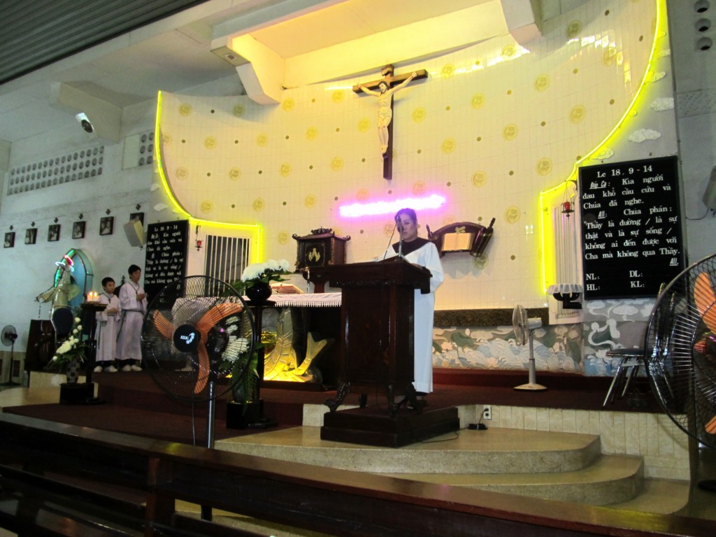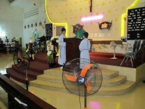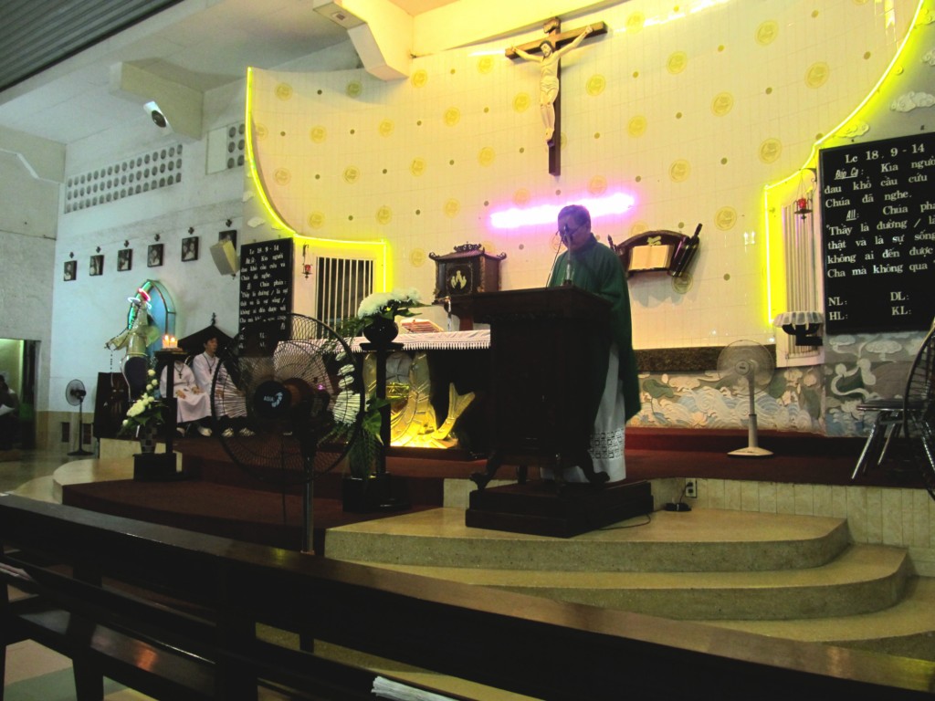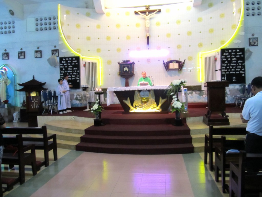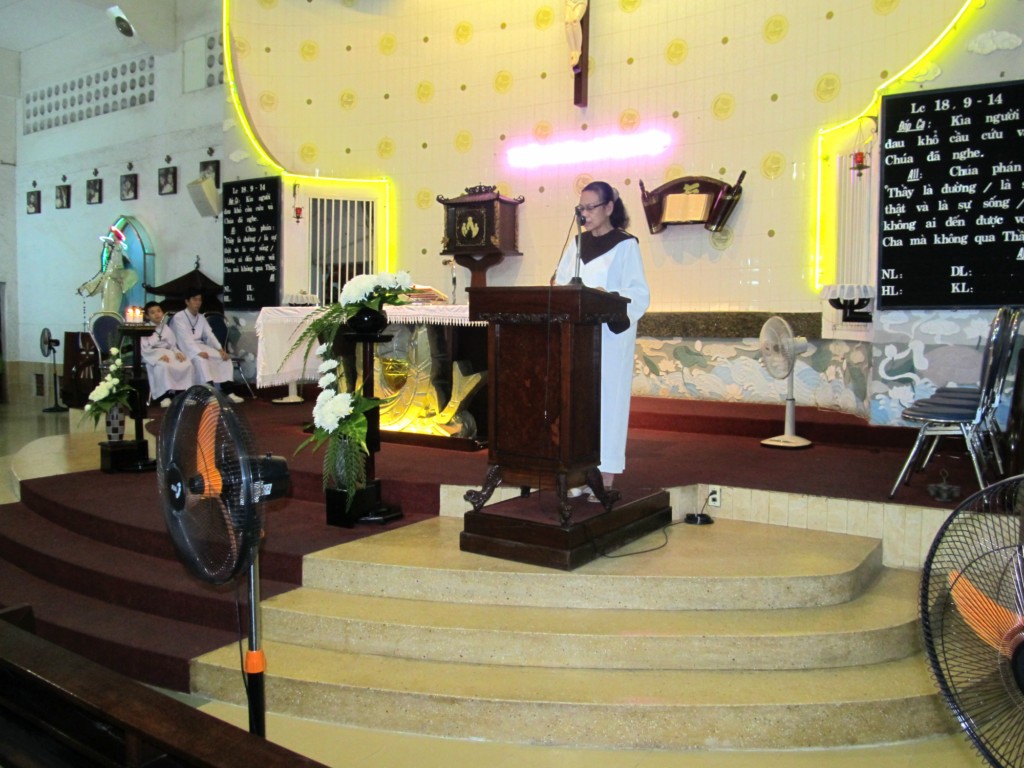 Qua bài Tin Mừng theo Thánh Lu-ca (18, 9-14) Cha Chủ tế Phanxicô đã nhấn mạnh đến đức tính khiêm nhường, chia sẻ và giúp đỡ những người nghèo khó chung quanh chúng ta “ Vì phàm ai tôn mình lên sẽ bị hạ xuống, còn ai hạ mình xuống sẽ được tôn lên “ như người thu thuế khi trở xuống mà về nhà, thì đã được nên công chính ; còn người Pha-ri-sêu thì không. Cuối bài giảng Cha chủ tế Phanxicô cũng nhắn nhủ cộng đoàn hãy năng đọc kinh lần hạt Mân Côi để Mẹ luôn che chở, phù hộ, giúp đỡ chúng ta.