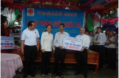 Sáng 07/08/2013, Caritas Vinh tổ chức lễ trao thuyền cho 4 Giáo xứ (Mỹ Dụ, Phù Long, Thọ Ninh, Đông Cường) vùng ven Sông Lam tại Giáo xứ Thọ Ninh.