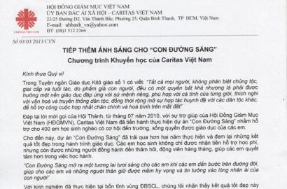 Invitation for supporting Education program of Caritas Vietnam