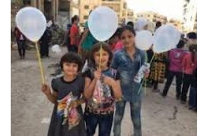 Các trẻ em - trong đó có nhiều em người Hồi giáo - đã viết những dòng tin gửi cho cộng đồng thế giới trên những quảbóng bay màu trắng những khẩu hiệu như “Chúng cháu muốn hoà bình”, “Hãy cho chúng cháu tuổi thơ”, “Chúng cháukhông muốn có chiến tranh nữa” và “Chúng cháu muốn đi học”.