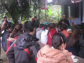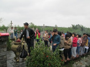 Buổi công tác làm cỏ nghĩa trang và thuyết trình có sự hiện diện của Cha Trần Văn Quí, Giám đốc Caritas Huế; Cha Bênêđictô Ngô Văn Hài, Quản xứ Ngọc Hồ, và 29 em tình nguyện viên, gồm sinh viên và công nhân viên chức thuộc chi hội Búp Sen Hồng. Dưới cơn mưa bay bay, các em đã thắp hương cầu nguyện trước tượng đài Đức Mẹ, đồng thời thắp hương và làm cỏ gần một ngàn ngôi mộ. Công việc ở nghĩa trang kết thúc lúc 11 giờ. Sau bũa ăn trưa là phần thuyết trình của nhóm Bảo Vệ Sự Sống. Bài thuyết trình gồm các chủ đề sau:
