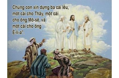 Trên núi cao, Chúa Giêsu gặp gỡ thân mật với Chúa Cha. Bỗng chốc Người biến hình. Các môn đệ ngất ngây trong niềm hạnh phúc tuyệt vời. Các ông muốn ở lại trên núi để sống niềm hạnh phúc ngập tràn ấy. Các ông muốn níu kéo khoảnh khắc thần tiên ấy lại nên Phêrô thay mặt anh em thưa với Chúa Giêsu: “Thưa Thầy, chúng con ở đây, thật là hay! Chúng con xin dựng tại đây ba cái lều, một cho Thầy, một cho ông Môisen, và một cho ông Êlia”. Phêrô muốn dừng lại để định cư với những túp lều lý tưởng trên núi cao.