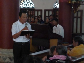 Ông Giuse Nguyễn Ngọc Đảm (Trưởng Ban Bác ái Giáo xứ Liễu Đề) đang phát biểu và cám ơn Quý thành phần Tham dự Thánh Lễ.
