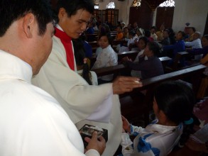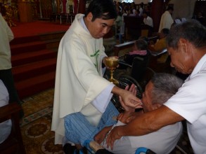 Cha xứ Đaminh Mai Đảm cho bệnh nhân rước lễ