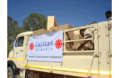 Caritas Namibia hoạt động thông qua một mạng lưới các nhân viên và tình nguyện viên. Vào tháng Chín và tháng Mười, họ đã có thể cung cấp thực phẩm, bưu kiện gia đình đến 13.500 hộ gia đình. Công việc này sẽ mở rộng quy mô với số tiền là 850,00 đô la Mỹ (630.000 €) thu được từ viiệc kêu gọi khẩn cấp, cung cấp hạt cà phê, đường và dầu ăn cho những người cần nhất.