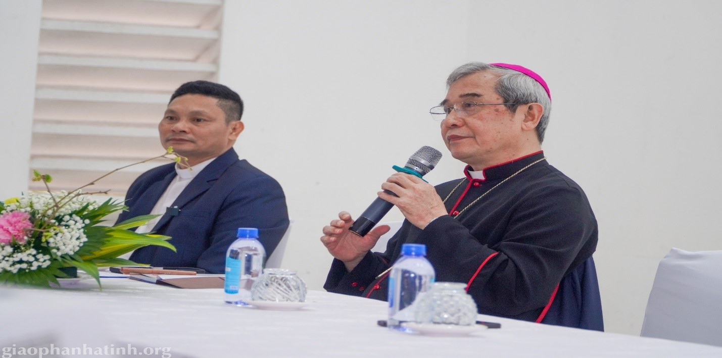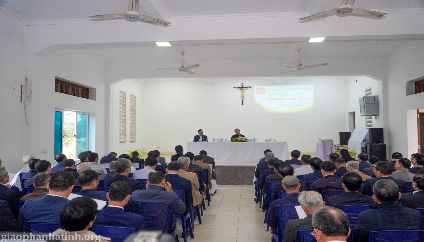 Sau huấn từ của Đức Giám mục, Cha GB Nguyễn Huy Tuấn - Giám đốc Caritas giáo phận trình bày các hoạt động năm 2023. Đây là kết quả của sự cố gắng, nổ lực của ban Caritas hà tĩnh cùng với sự hỗ trợ của Đức Cha Louis; quý Cha quản hạt, quý Cha đặc trách Caritas các Giáo hạt, quý các tổ chức, cá nhân là những nhà tài trợ trong và ngoài nước, các cộng tác viên và tình nguyện viên.
