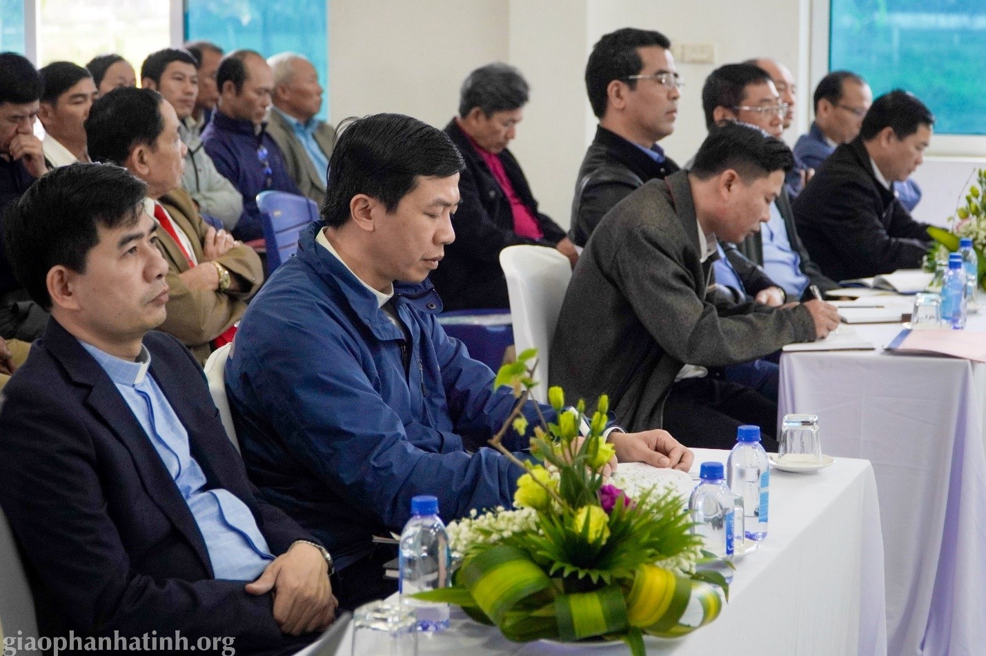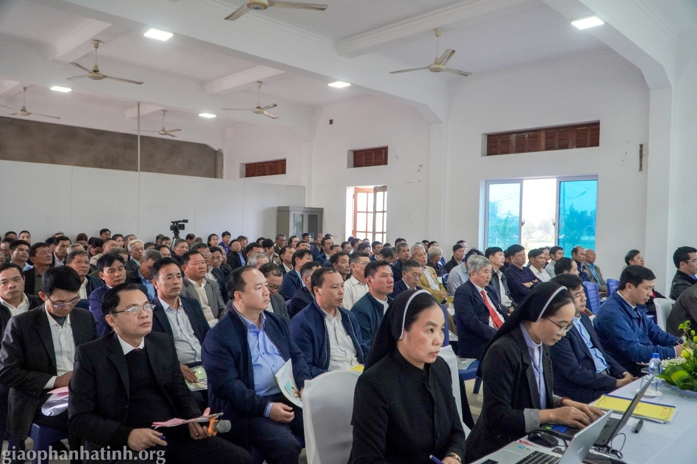 Về dự Hội nghị có Đức Cha Louis Nguyễn Anh Tuấn, chủ chăn Giáo phận; Cha Pet Nguyễn Đoài, chưởng ấn Tòa Giám Mục; Cha GB Nguyễn Huy Tuấn, Giám đốc Caritas giáo phận; cùng Quý Cha quản hạt, quý Cha đặc trách Caritas các giáo hạt; quý Cha đặc trách các tiểu Ban thuộc Caritas giáo phận; quý Soeurs Văn phòng Caritas; quý Soeurs đại diện các hội dòng; ban điều hành Caritas các giáo xứ, giáo hạt cùng đông đảo anh chị em Cộng tác viên và tình nguyện viên.