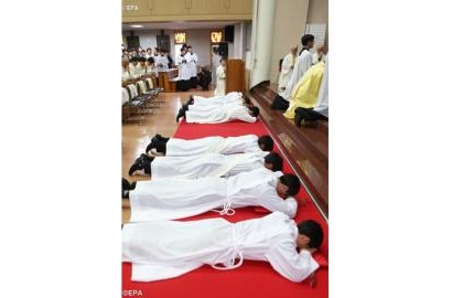 Các thầy phó tế trong nghi lễ truyền chức linh mục - EPA