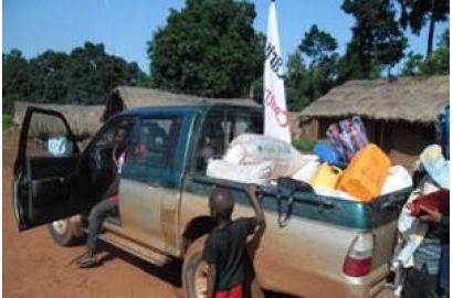 | Đại diện Caritas đang xem xét nhu cầu và phân phối dụng cụ tại Mbaiki, Bossangoa và Bungui tháng 05 và tháng 06 - Ảnh: Caritas |
