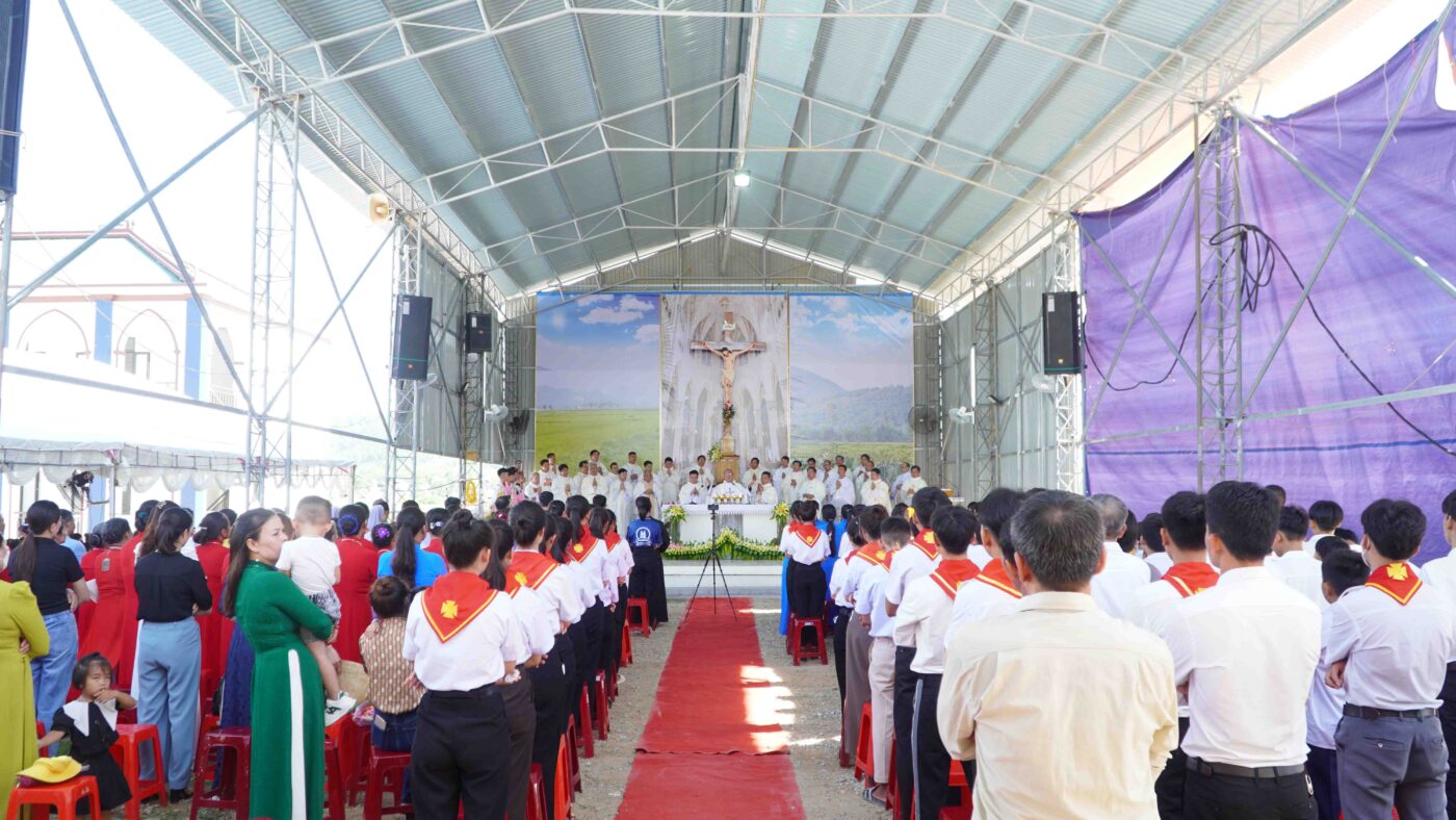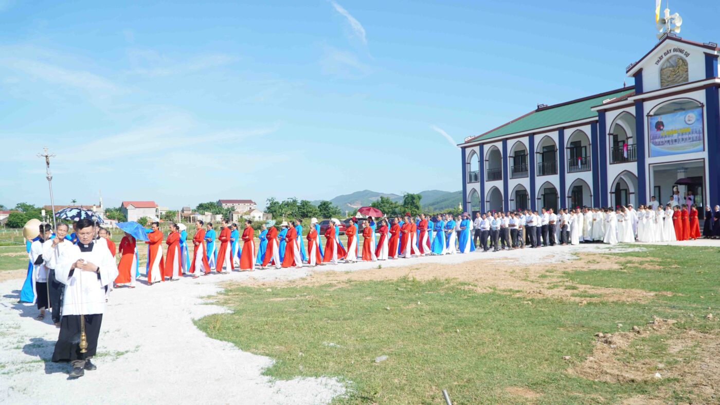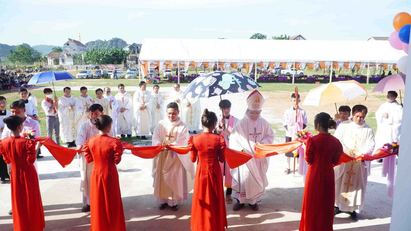 Trước thực tế đó, vào ngày 13/3/2021 Đức cha Phaolô Nguyễn Thái Hợp – Nguyên Giám mục tiên khởi đã dặt viên đá đầu tiên xây dựng ngôi nhà vượt lũ. Sau hơn 1 năm công trình được khởi công, ngày 23/8/2022 ngôi nhà vượt lũ chính thức được hoàn thành và được Đức cha Giám quản Louis đến cắt băng khánh thành và làm phép để đưa vào sử dụng.