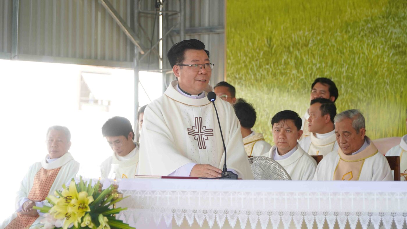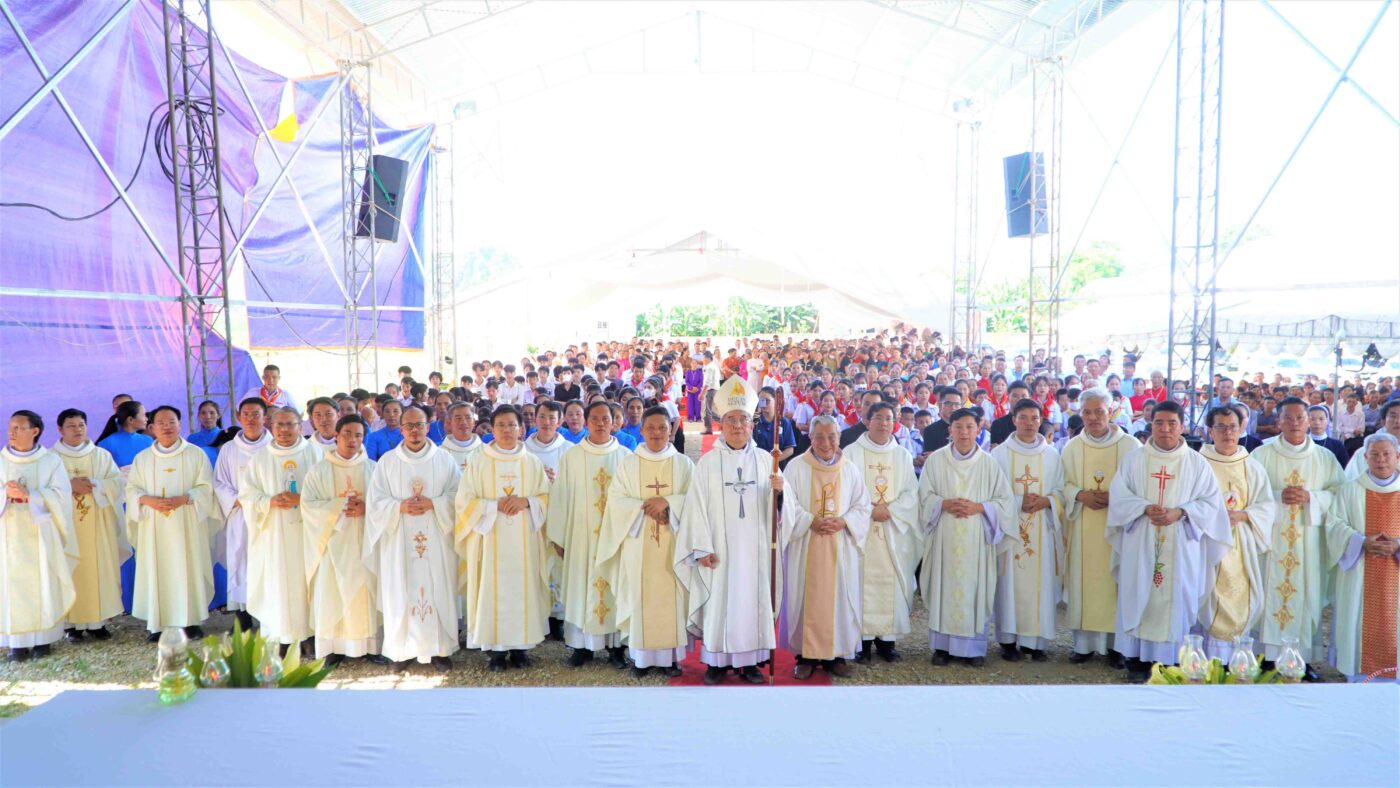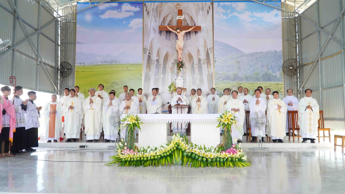 Trước thực tế đó, vào ngày 13/3/2021 Đức cha Phaolô Nguyễn Thái Hợp – Nguyên Giám mục tiên khởi đã dặt viên đá đầu tiên xây dựng ngôi nhà vượt lũ. Sau hơn 1 năm công trình được khởi công, ngày 23/8/2022 ngôi nhà vượt lũ chính thức được hoàn thành và được Đức cha Giám quản Louis đến cắt băng khánh thành và làm phép để đưa vào sử dụng.