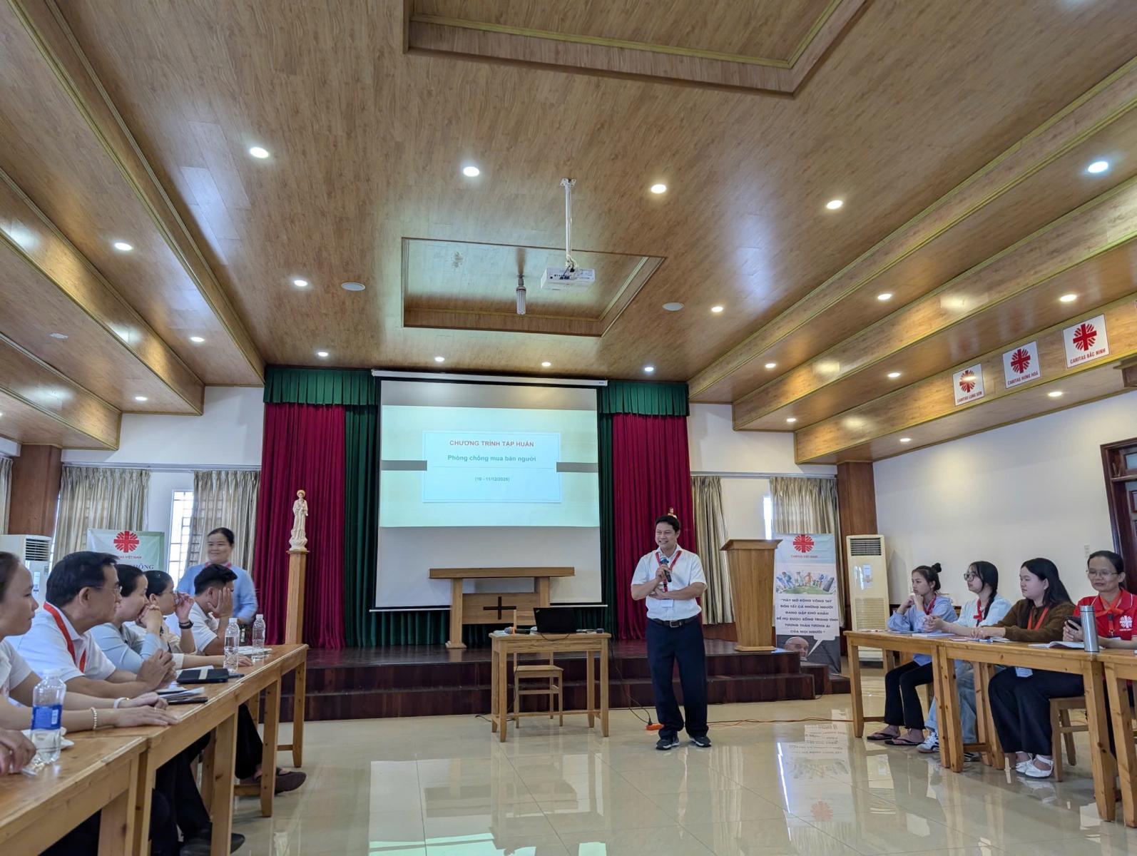 Chiều ngày 9.12, theo kế hoạch đã định, các thành viên Ban Phòng chống buôn người của Caritas đến từ năm giáo phận: Huế, Đà Nẵng, Đà Lạt, Long Xuyên và Phú Cường đã tụ họp đông đủ tại trụ sở Caritas Việt Nam trên Quốc lộ 13, cách nhà thờ Đức Bà Sài Gòn khoảng 7,3 km để tham dự hai ngày tập huấn 10 và 11 tháng 12 do Caritas Việt Nam tổ chức.