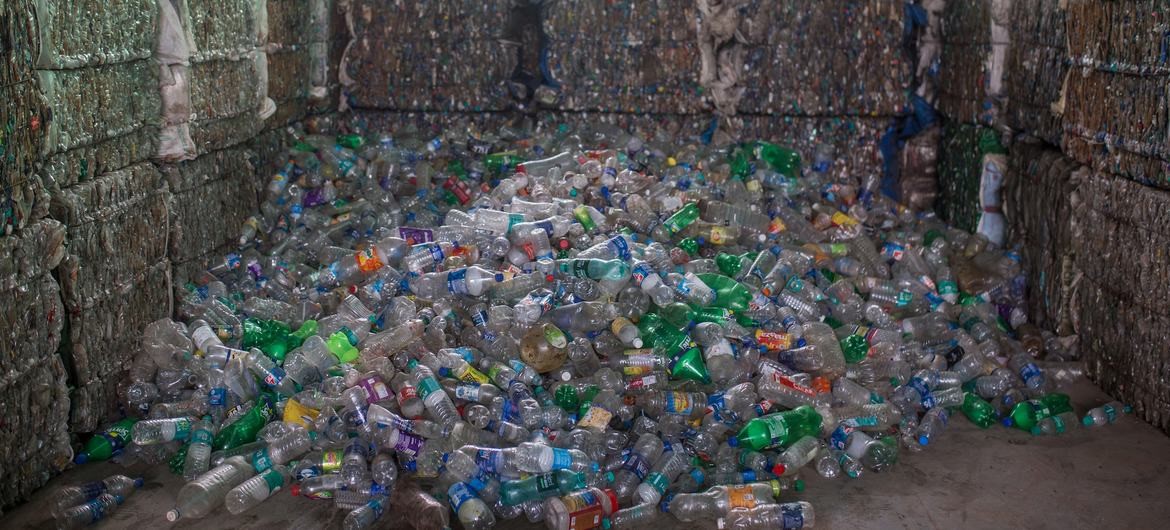 UNDP Ấn Độ - Chai nhựa được thu gom để tái chế ở Ấn Độ.