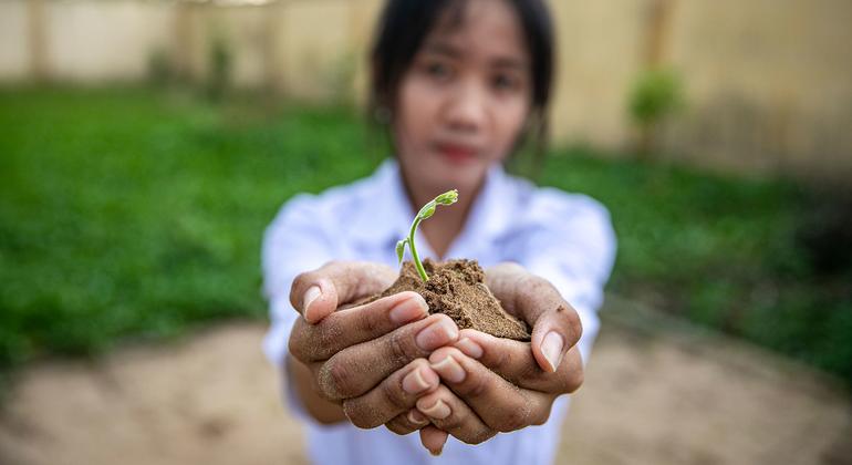 © UNICEF/Trương Việt Hùng - Một sinh viên tại Việt Nam trao tặng cây giống.