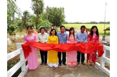 Sau hơn 1 tháng xây dựng, sáng nay Caritas Việt Nam, chính quyền địa phương cũng như người dân hai ấp Mỹ Tây và Mỹ Trung hân hoan khánh thành cây cầu nối kết hai xã mang tên Caritas Mỹ Tho.