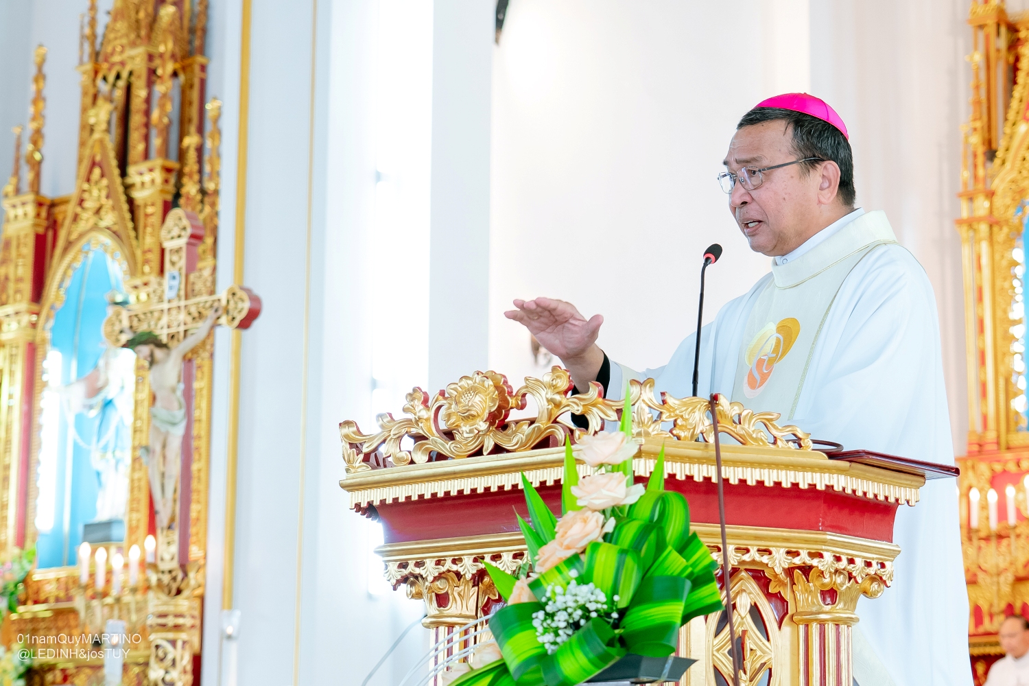 Thánh lễ tạ ơn diễn ra lúc 10h15 do Đức cha giáo phận chủ sự, với sự đồng tế của cha Tổng đại diện, Quý cha Quản hạt, Quý cha Đặc trách, Quý cha xứ. Trong bài giảng, Đức cha đã tóm lược lại những nét nổi bật trong cuộc đời Thánh Martinô Porres: bị coi là con ngoại hôn, là người da màu (“công dân hạng hai”), nhưng ngài rất trổi trang về hương thơm các nhân đức như khiêm nhường, nhẫn nại, hãm mình, vâng lời và đặc biệt là lòng bác ái, mến Chúa yêu người; khi nhà Dòng gặp khó khăn tài chính, ngài sẵn lòng xin cha Bề trên bán ngài đi để lấy kinh phí lo việc chung. Đức cha cũng khen ngợi sáng kiến mở quỹ của Ban Caritas, khi các nguồn tài trợ bên ngoài có xu hướng giảm, thì việc quan tâm phát huy nội lực là một hướng đi đúng. Ngài bày tỏ sự vui mừng trước những hoa trái mà Quỹ đã đạt được.
