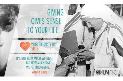 Hôm nay, Liên Hợp Quốc (LHQ) cử hành kính nhớ Chân Phước Mẹ Têrêsa Calcutta bằng việc tuyên bố ngày 05 tháng Chín là ngày Quốc tế từ thiện. Theo số liệu của Liên Hợp Quốc, sáng kiến này đã được Hungary đề xuất "với mục tiêu tạo ra một diễn đàn hoàn vũ để nâng cao nhận thức về tầm quan trọng của từ thiện."